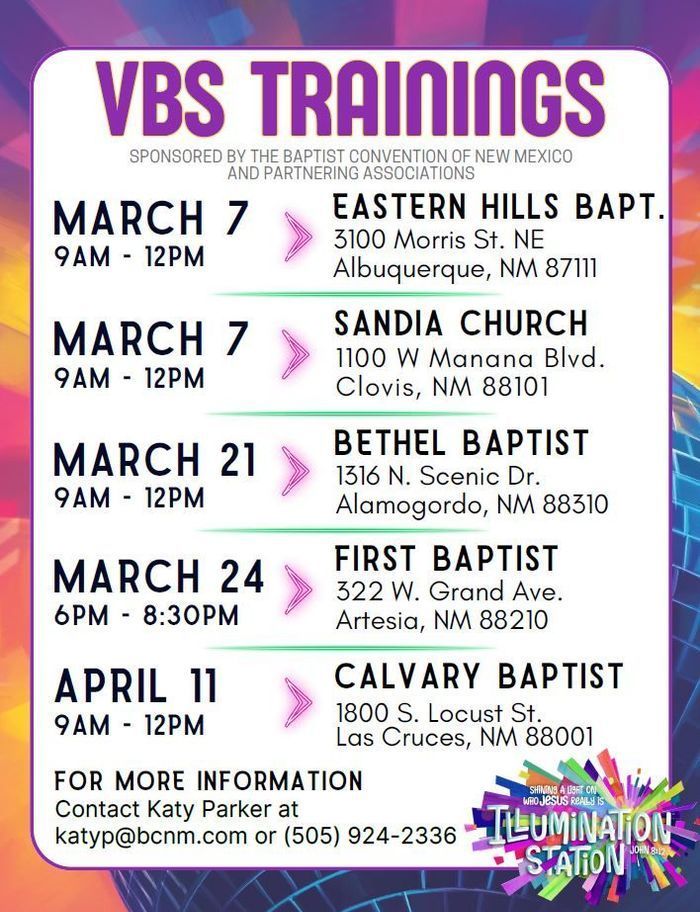Thank you, FBC Tucumcari for sharing some of the happenings going on at your church! Other churches may also submit items for possible inclusion in the association's newsletter to Elaine at tri.area.baptist.association@gmail.com.
